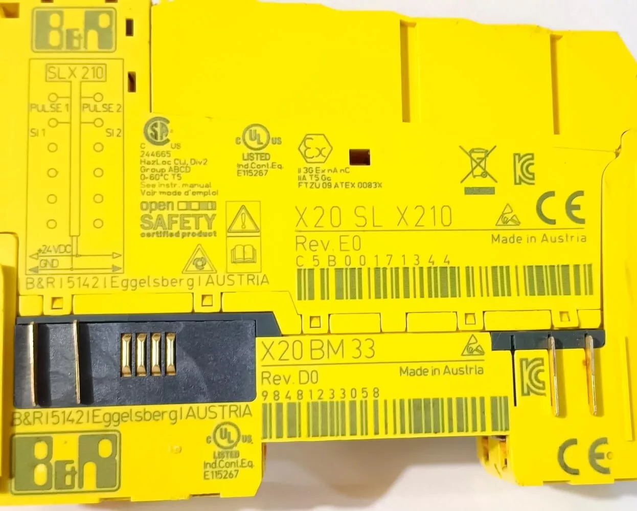 B&R X20 SL X210 & X20BM33 Safe Logic-X Digital Input Module with Base | Used