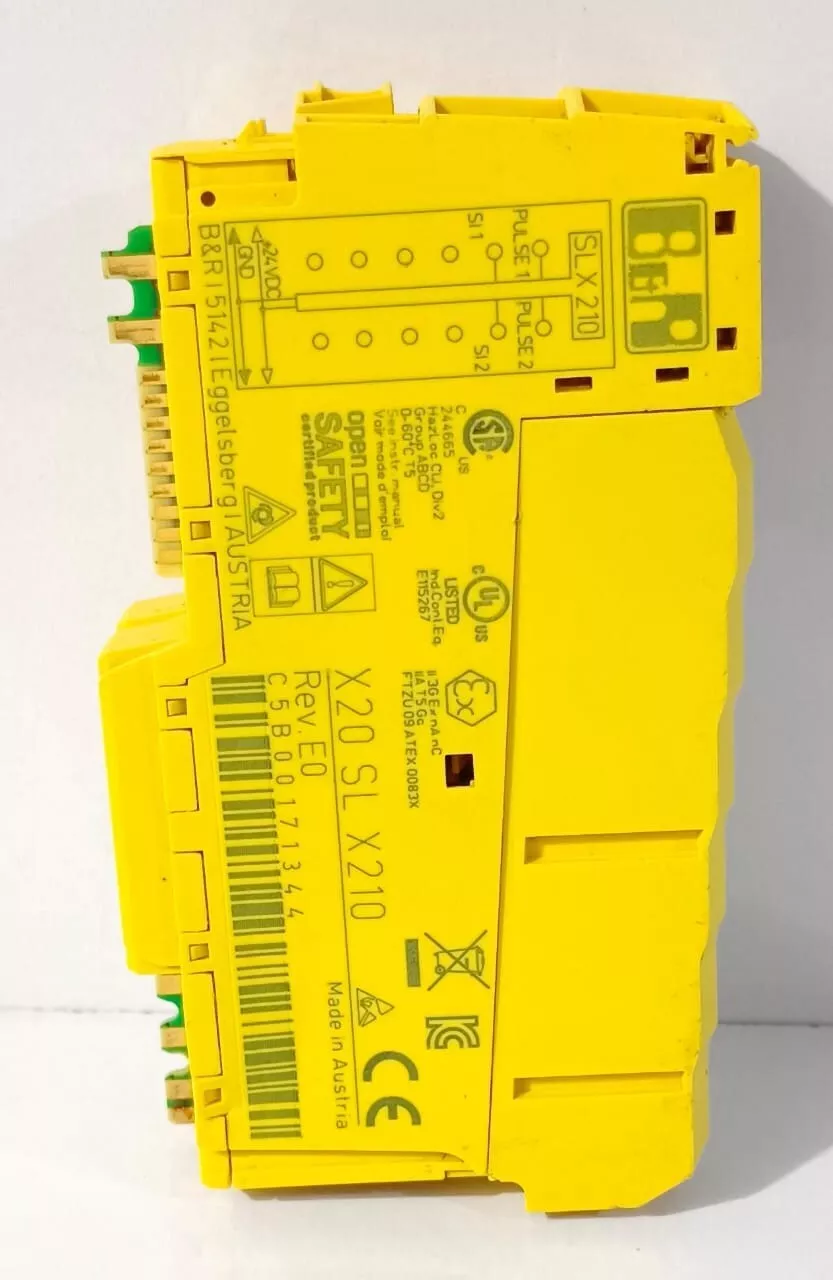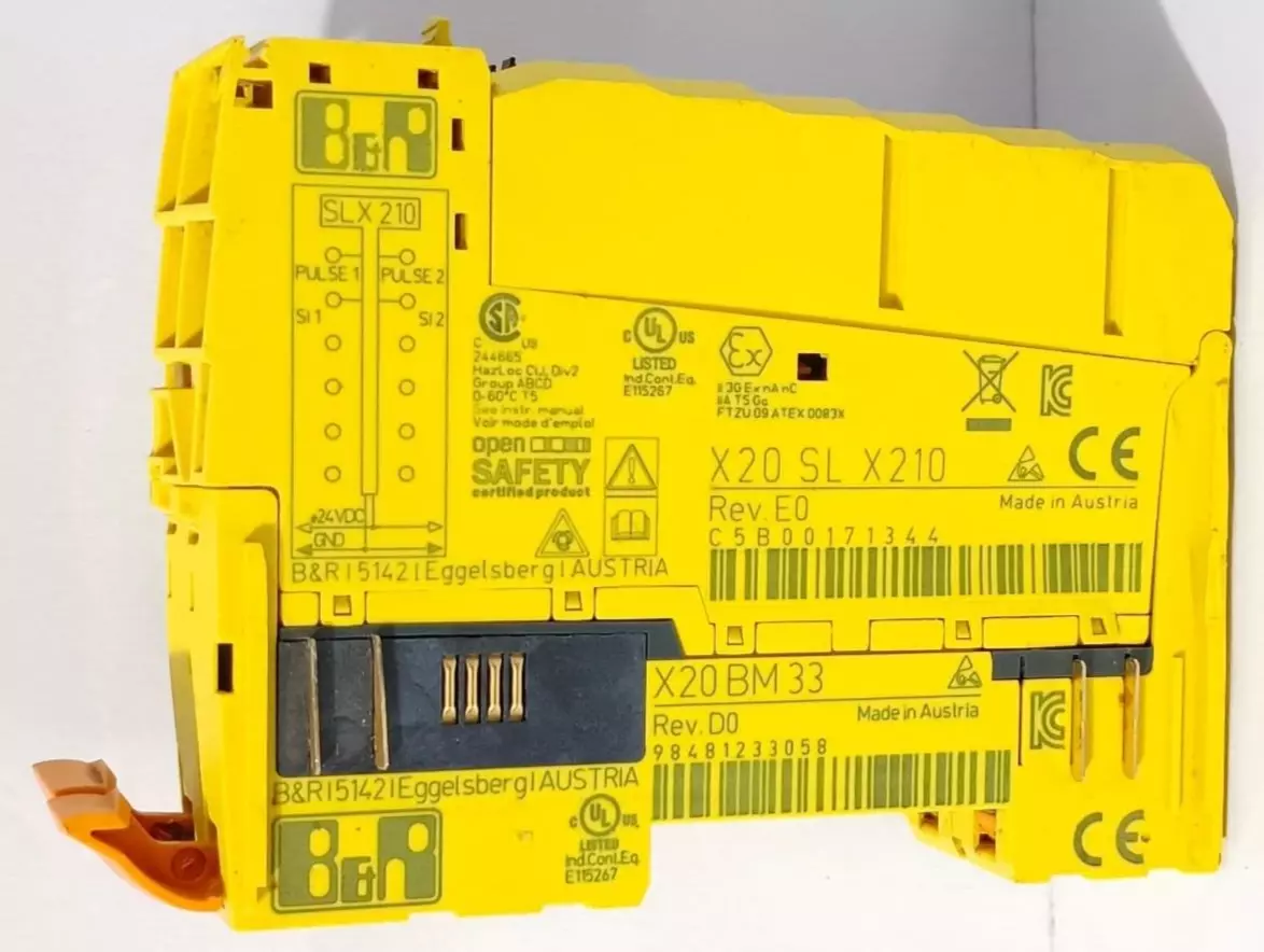 This B&R X20 SL X210 & X20BM33 Safe Logic-X Digital Input Module comes with its module base (X20BM33) and is designed for industrial PLC automation systems. It ensures reliable and safe signal processing in automation applications.