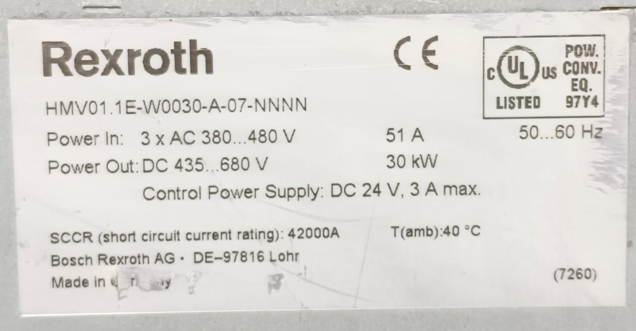Rexroth HMV01.1E-W0030-A-07-NNNN,INDRADRIVE,30kW,SERVO DRIVE/POWER SUPPLY MODULE